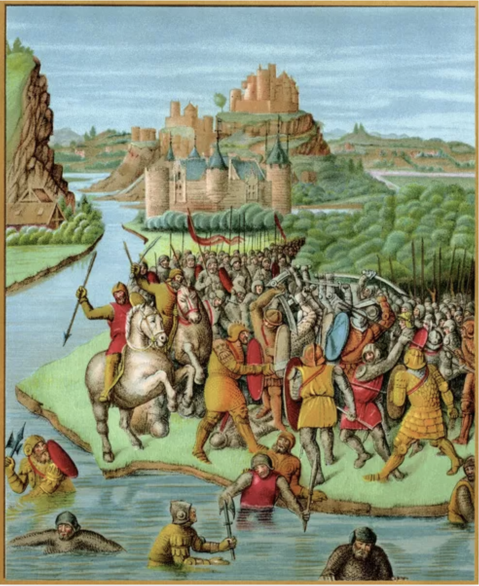 Jonathan battling Baccide, from a French translation of Josephus History of the Jews, 1400s.
